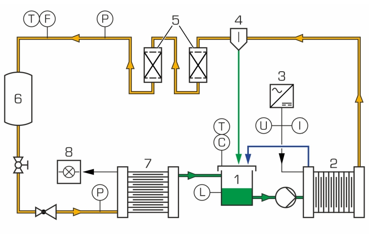 Une source de tension continue permet de fournir la tension nécessaire aux cellules de lélectrolyseur.
