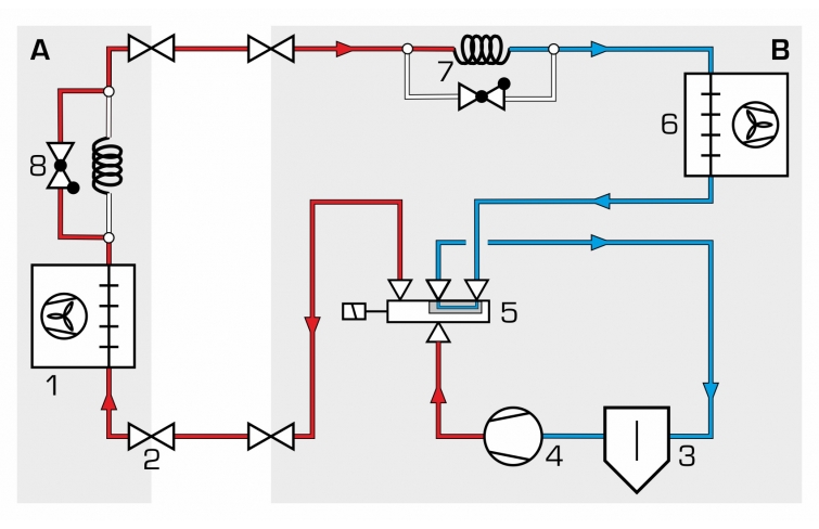 En mode de chauffage, le transport de chaleur se fait dans le sens inverse.