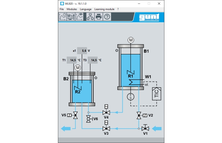 Le logiciel GUNT fourni permet de consigner les températures dans un rapport de mesure en fonction du temps et de documenter ainsi les différents comportements temporels.